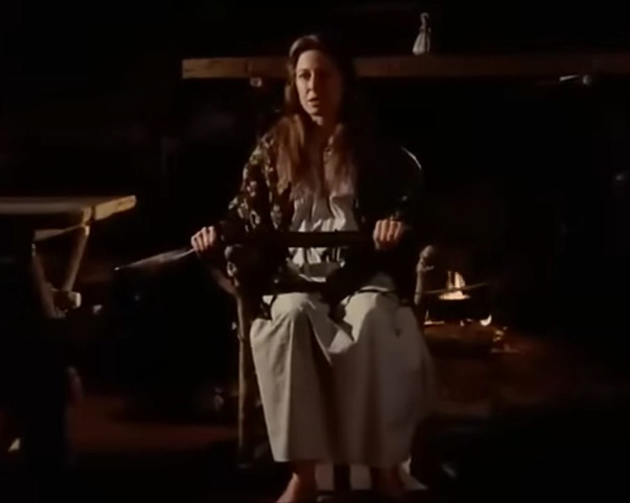 She grabs a rifle, sits calmly in a chair facing the door, and softly sings a hymn to herself. She patiently waited to get at least one shot off on behalf of her family and home before being overwhelmed by murderous thieves in the night.