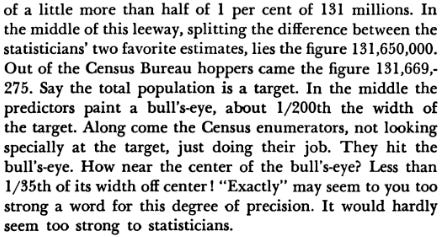 And when the results of the 1940 census were released not long after the report above, Chase was (epistemically) delighted to find that the U.S. population had landed directly between the two population estimates the authors of the 1938 report thought most likely: 131,308,000 and 131,993,000. In a 1941 pamphlet entitled “What the New Census Means,” Chase said: