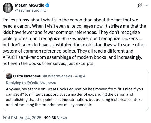 Tanner Greer of had a long thread about how to make an English major rigorous. I have quoted the first tweet in the thread at full length below (from July 5, 2025):